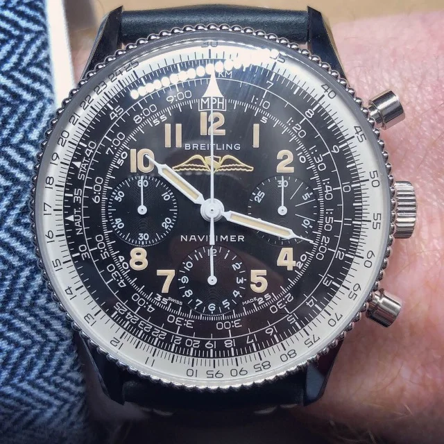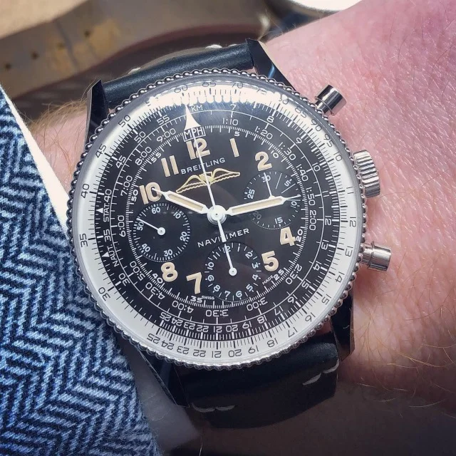 An original All Black 806 Navitimer (owned by TheRustyWatchGuy) next to the new Re-Edition